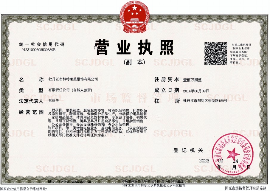 黑龍江省牡丹江市博特萊美服飾有限公司生產(chǎn)廠家